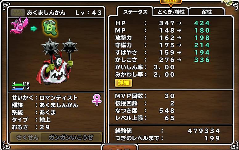 • こちらも全く同じ100%・ミニ島のモンスは全て特技伝授しませんでしたよ~。曜日クエで拾ったさまようよろいちゃんが、一発で伝授してくれるとか発生したので今回は許すけど。前回も特技伝授悪かったような覚えがあります。 -- 2014-02-16 (日) 17:44:32