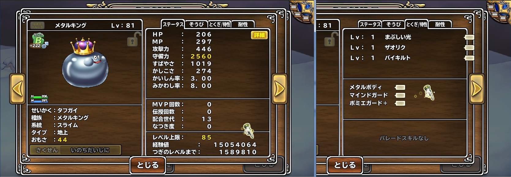 キラーマジンガ ふつう Lv50 HP645 MP161 攻436 守481 素332 賢161 重さ55