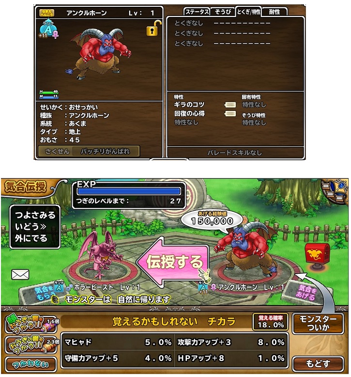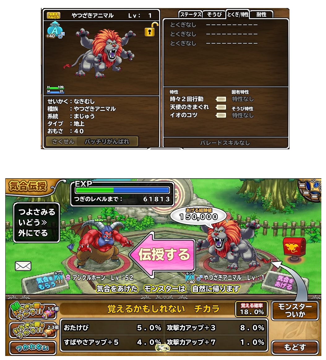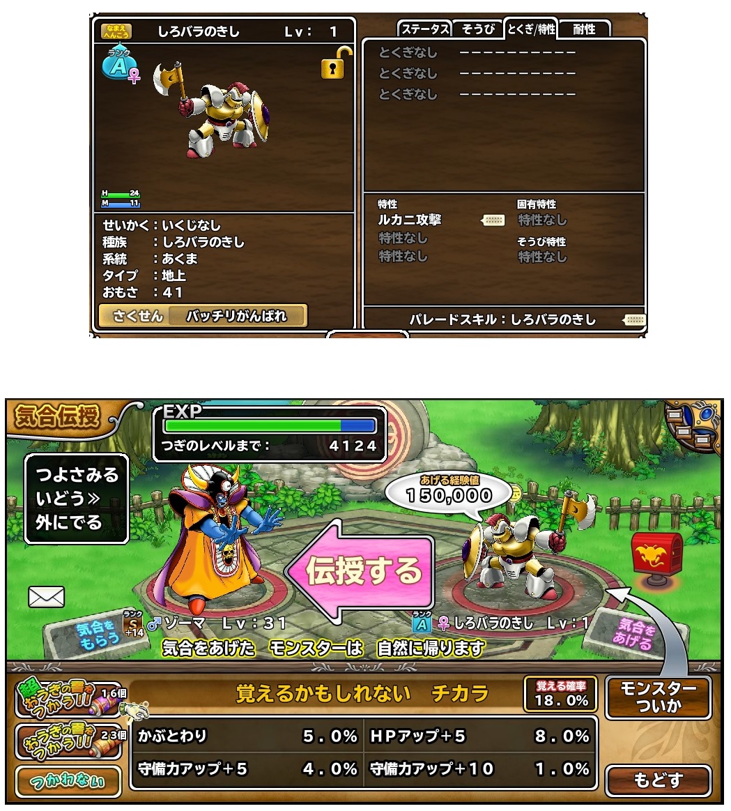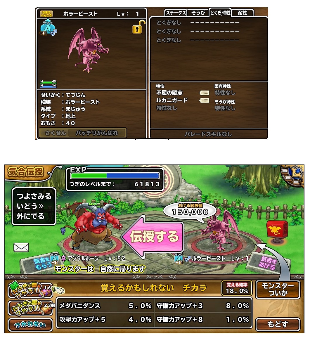 「おばけきのこ 5%枠? HP+3(甘い息を伝授不可能状態)」 「くさった死体 5%枠? HP+3(甘い息を伝授不可能状態)」 「マドハンド 5%枠? HP+3(甘い息を伝授不可能状態)」 「わらいぶくろ 5%枠? 守備力+3(ふしぎなおどり伝授不可能状態)」 -- 2013-09-28 (土) 15:15:29