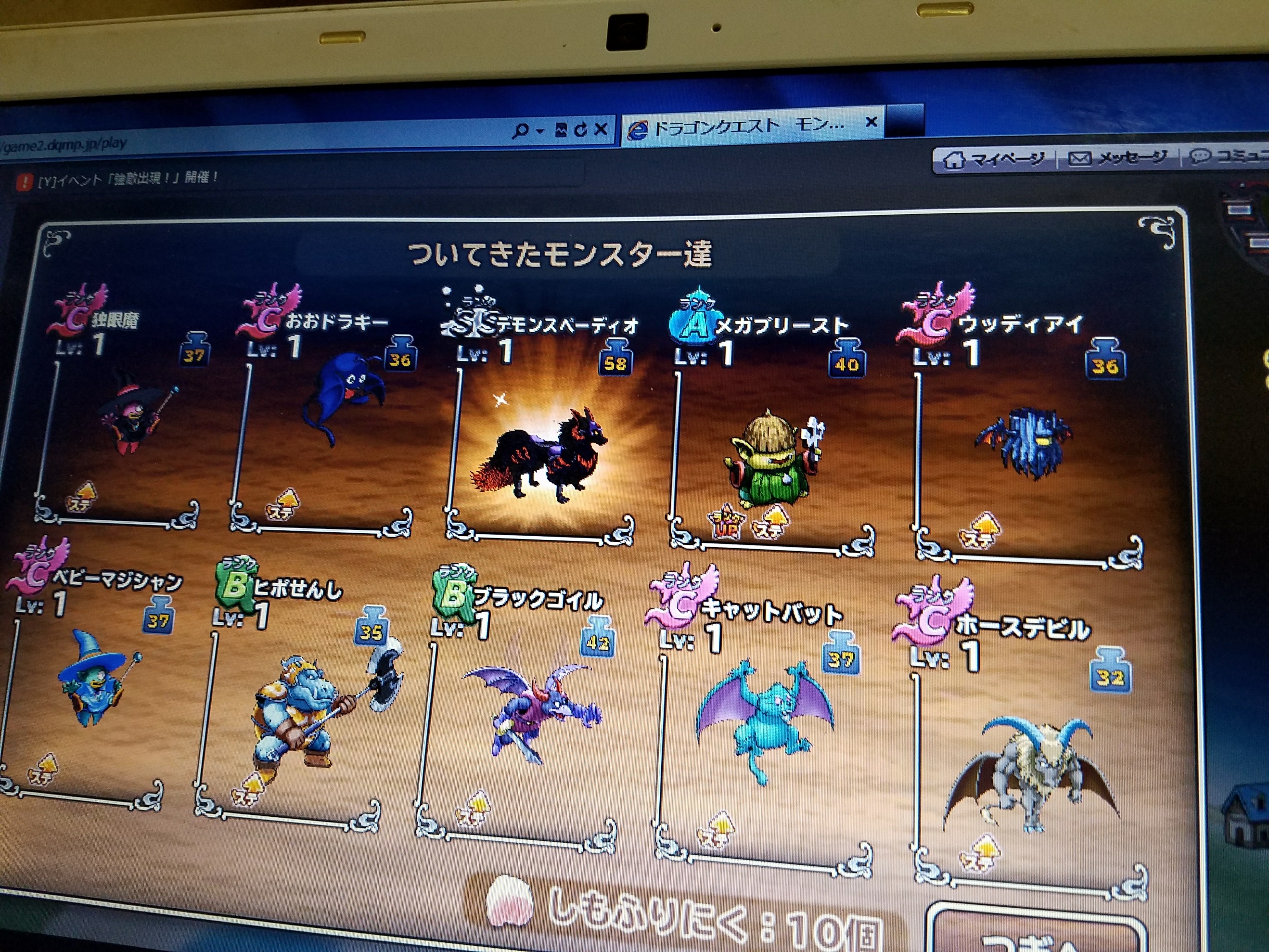 しもふり1個なげ9回目で、神龍キター!性格はうっかりもの!今年初めての魔王!! -- sincostan