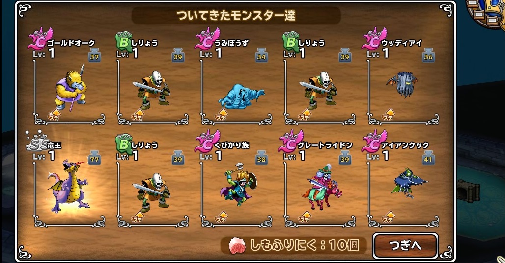 http://thumbnail.image.shashinkan.rakuten.co.jp/shashinkan-core/showPhoto/?pkey=9473b3b7d168395f9740671aab501c7c83a2c627.36.2.2.2a1.jpg 昨夜、寝る前に溜めた肉を10個投入しました。何と!竜王(LV:1)をゲットすることに成功! 性格:いっぴきおおかみ HP:84 MP:12 攻撃:42 守備:66 すばやさ:22 かしこさ:25 かいしん率:3.00 みかわし率:2.00 -- 2014-07-29 (火) 15:12:43