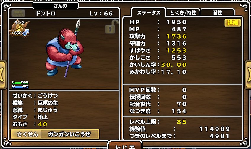S+650のごうけつのステとはとても思えないくらいにはひどい能力値だけど、コイツをここまで育てたのだけはものすごいと思うし誰にも真似できることではないと思う。すげえw --