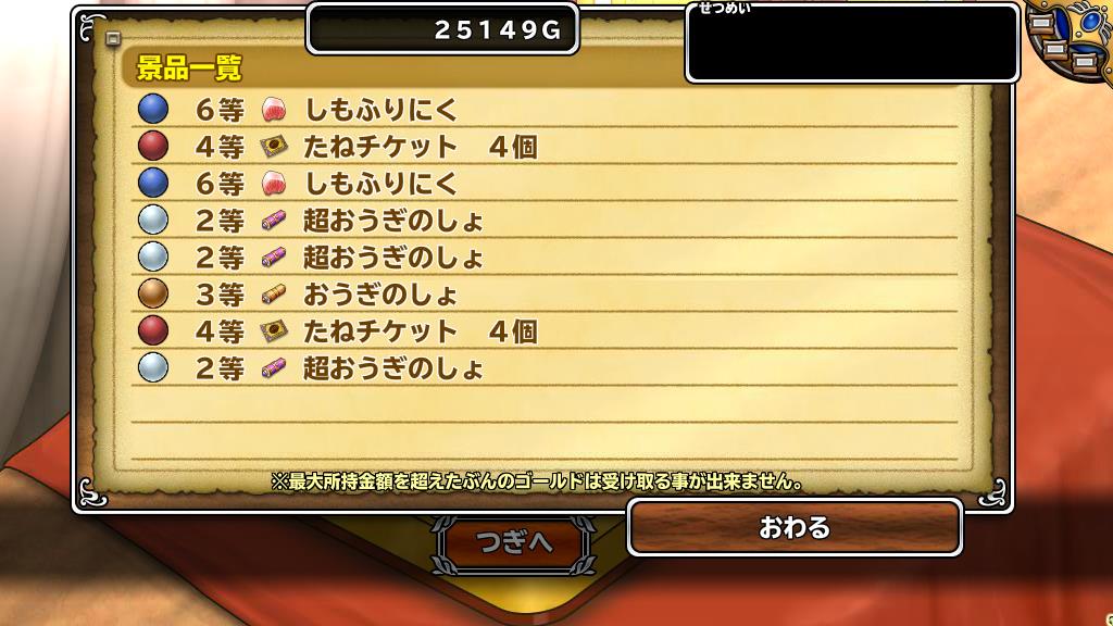 金ドラキー2と金モーモンでした。今回は銀と銅が多かったです。 --
