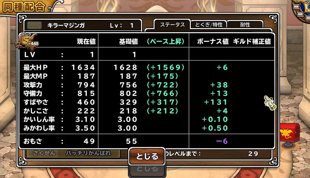 • 竜王持っていなかったり、竜王のデザインがって人は粘ってもいいモンスだろうな。出れば一生物でしょ、これ以上の性能はなかなか無いと思う -- 2015-11-10 (火) 22:12:10
